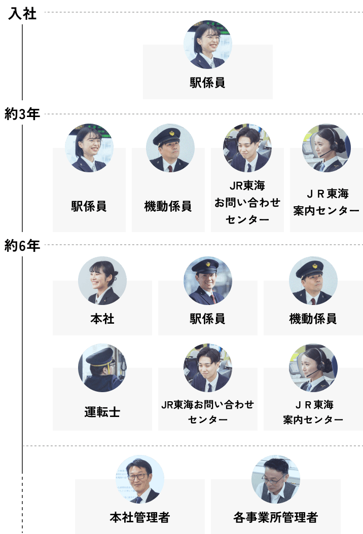 JR東海交通事業ならではの教育体制と、多彩なキャリアパスをご紹介します。